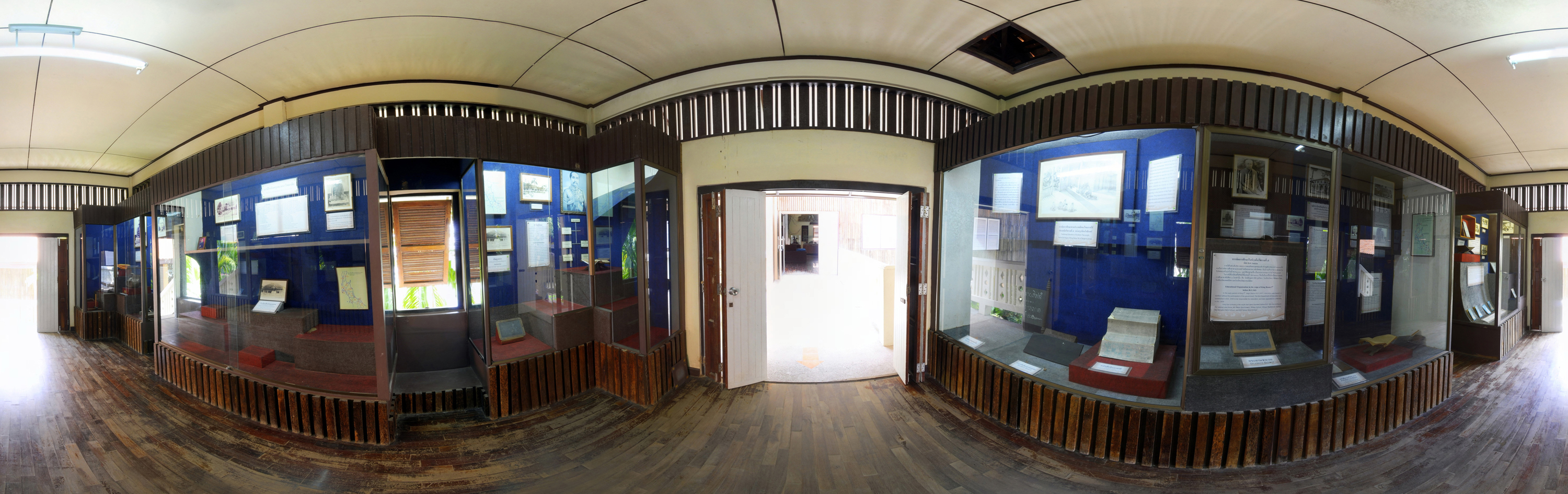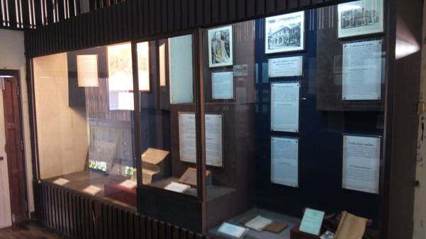 แบ่งหัวข้อการจัดแสดงออกเป็น ๔ หัวข้อ ได้แก่ ประการแรก การจัดการศึกษาตามประเพณีของไทยภาคใต้ ก่อนสมัยรัชกาลที่ ๕ แห่งกรุงรัตนโกสินทร์ซึ่งวัดมีบทบาทในฐานะเป็นที่เรียนหนังสือโดยมีพระสงฆ์เป็นเสมือนครูผู้สอน เป็นการฝึกหัดอ่าน เขียน อุปกรณ์ที่ใช้เป็นกระดานนอโม และสมุดไทย