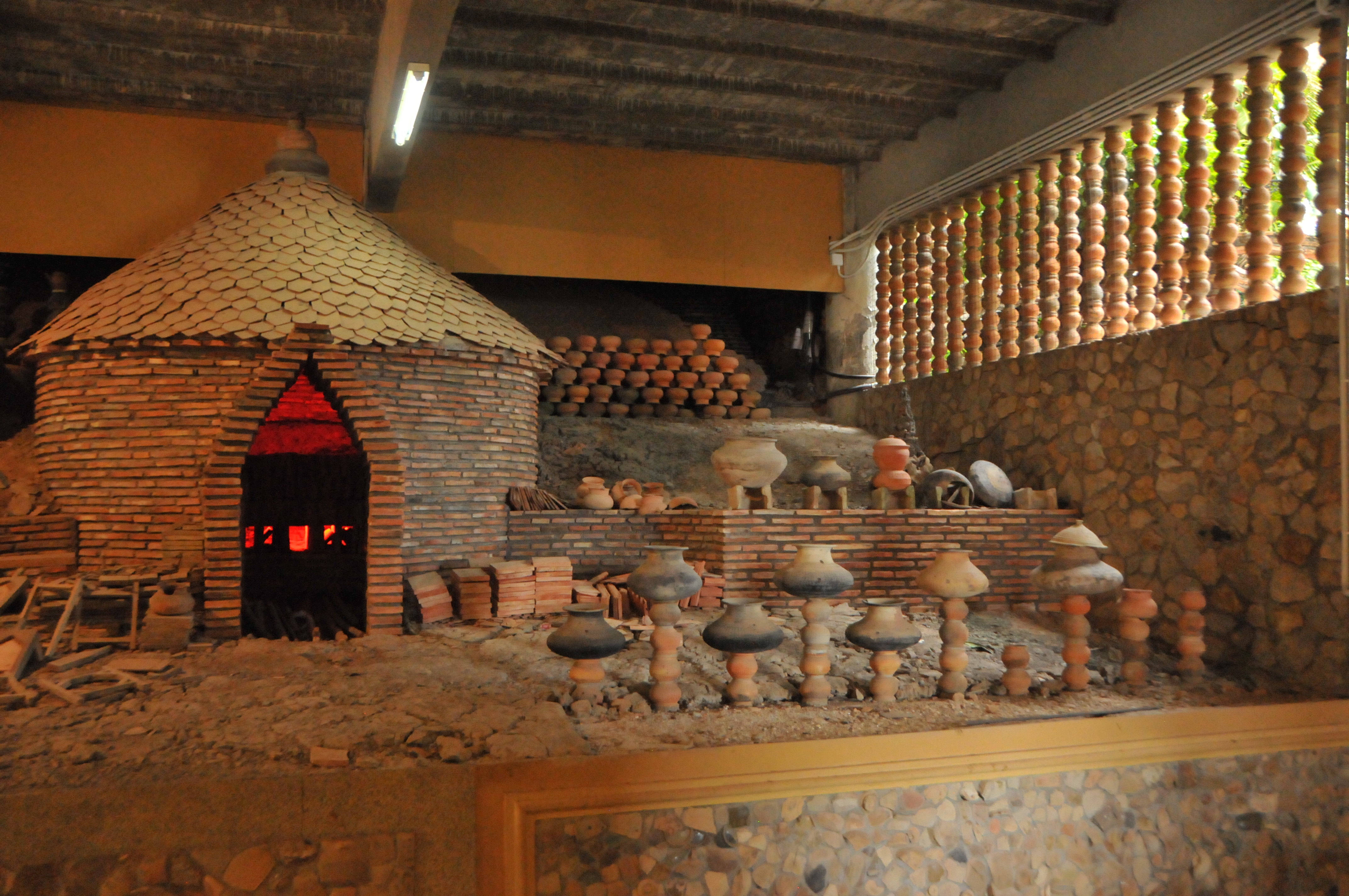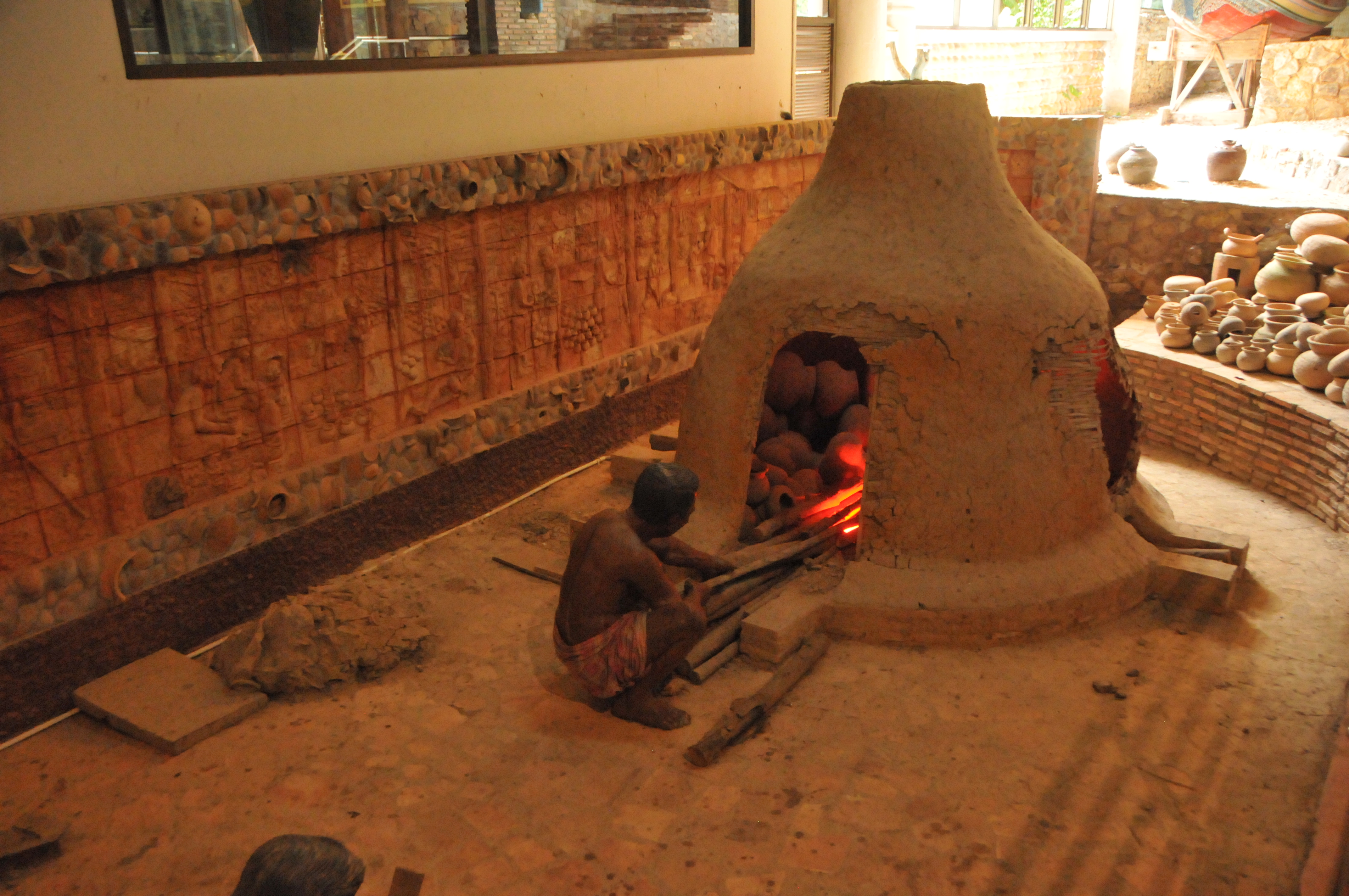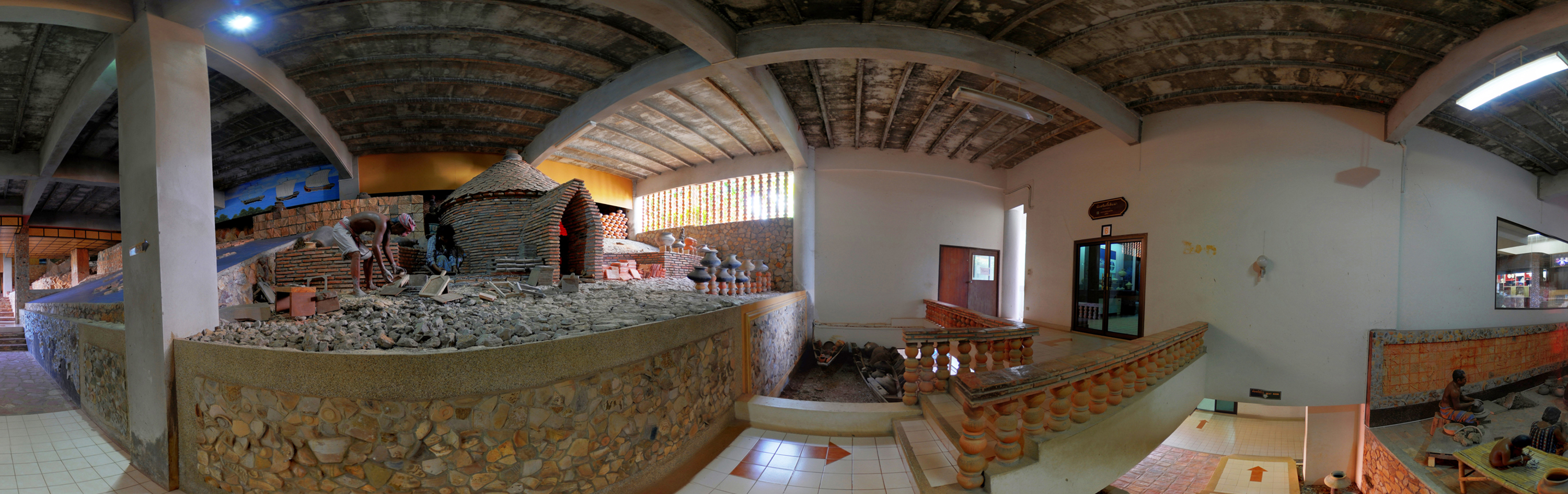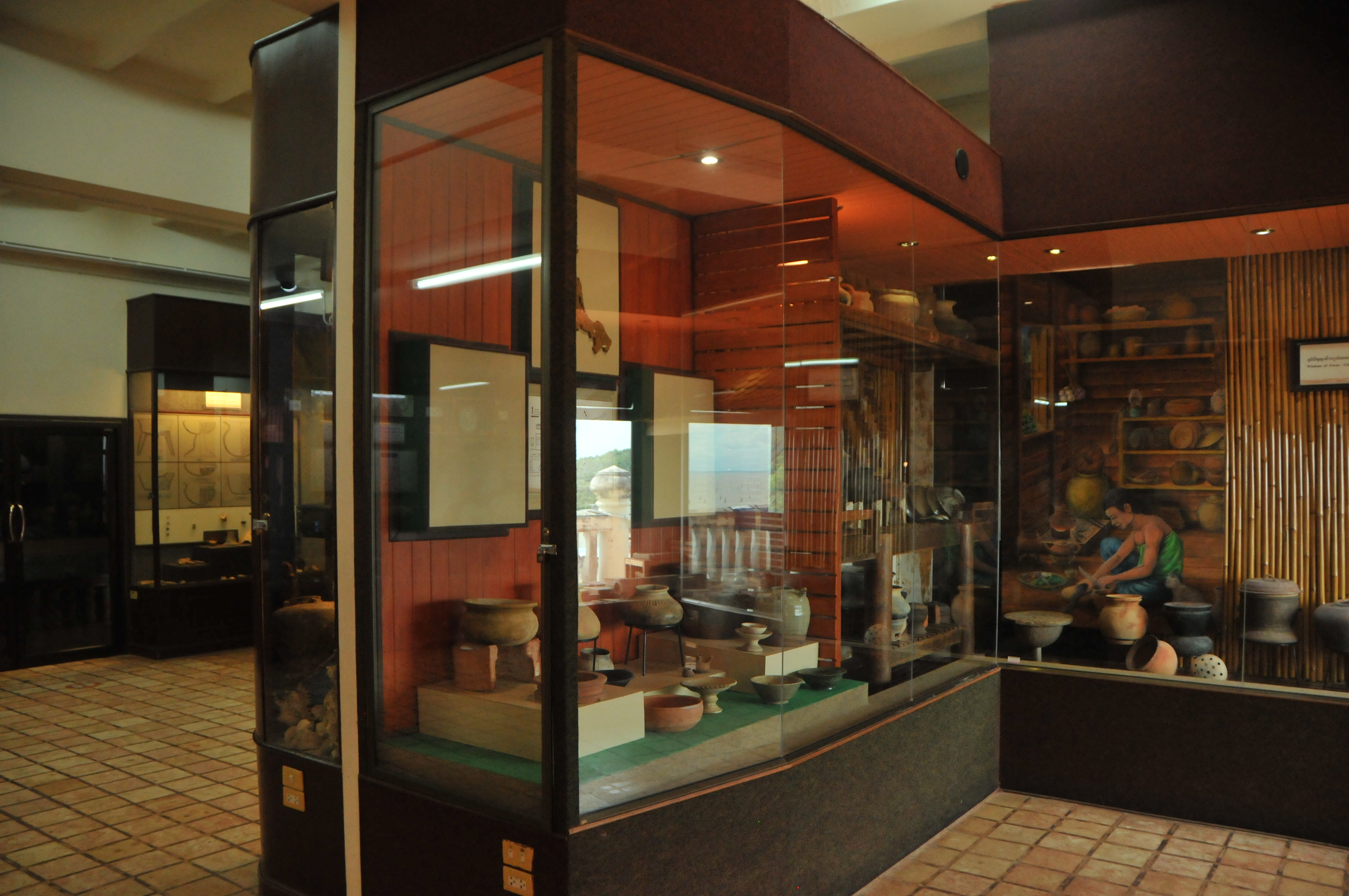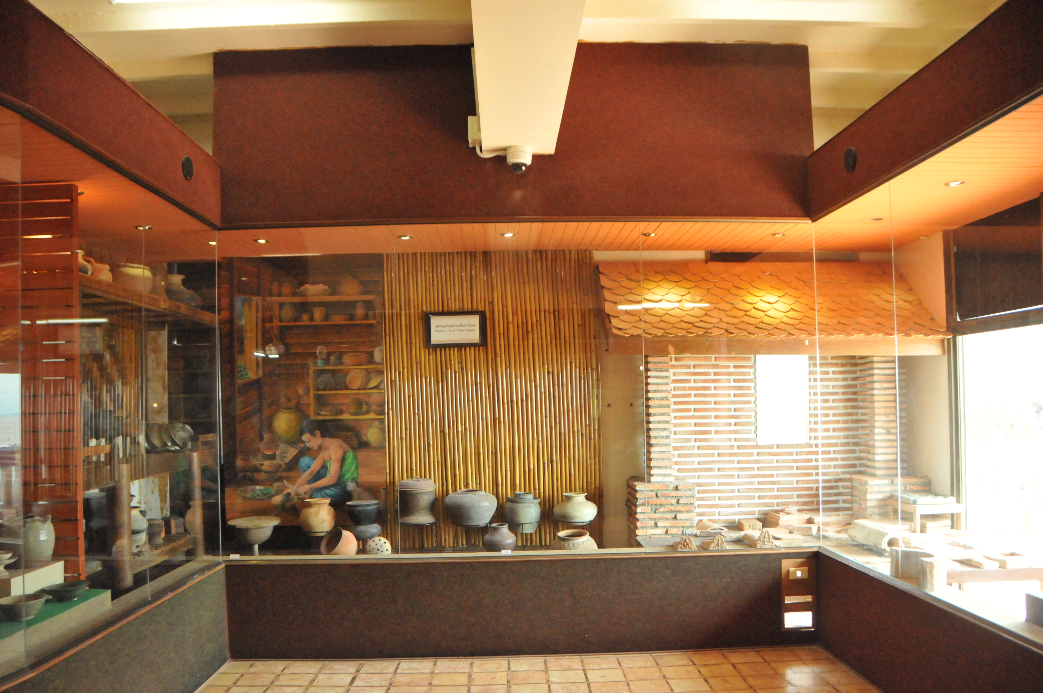 สภาพภูมิประเทศภายนอกห้องจัดแสดงจัดแสดงแบบจำลองการทำภาชนะดินเผา กระเบื้องดินผา และขั้นตอนการผลิตภาชนะดินเผาตั้งแต่กระบวนการการเตรียมดิน จนกระทั่งเมื่อได้เป็นผลิตภัณฑ์ออกมา โดยทำเป็นประติมากรรมนูนสูงดินเผา และยังได้จำลองรูปแบบเตาเผาที่พบจากการขุดค้นทางโบราณคดีซึ่งเป็นเตาเผาภาชนะที่บริเวณคลองปะโอ อำเภอสทิงพระ จังหวัดสงขลา และเตาเผาจำลองที่ยังคงมีการผลิตสินค้าประเภทกระเบื้องดินเผาอยู่ในปัจจุบัน