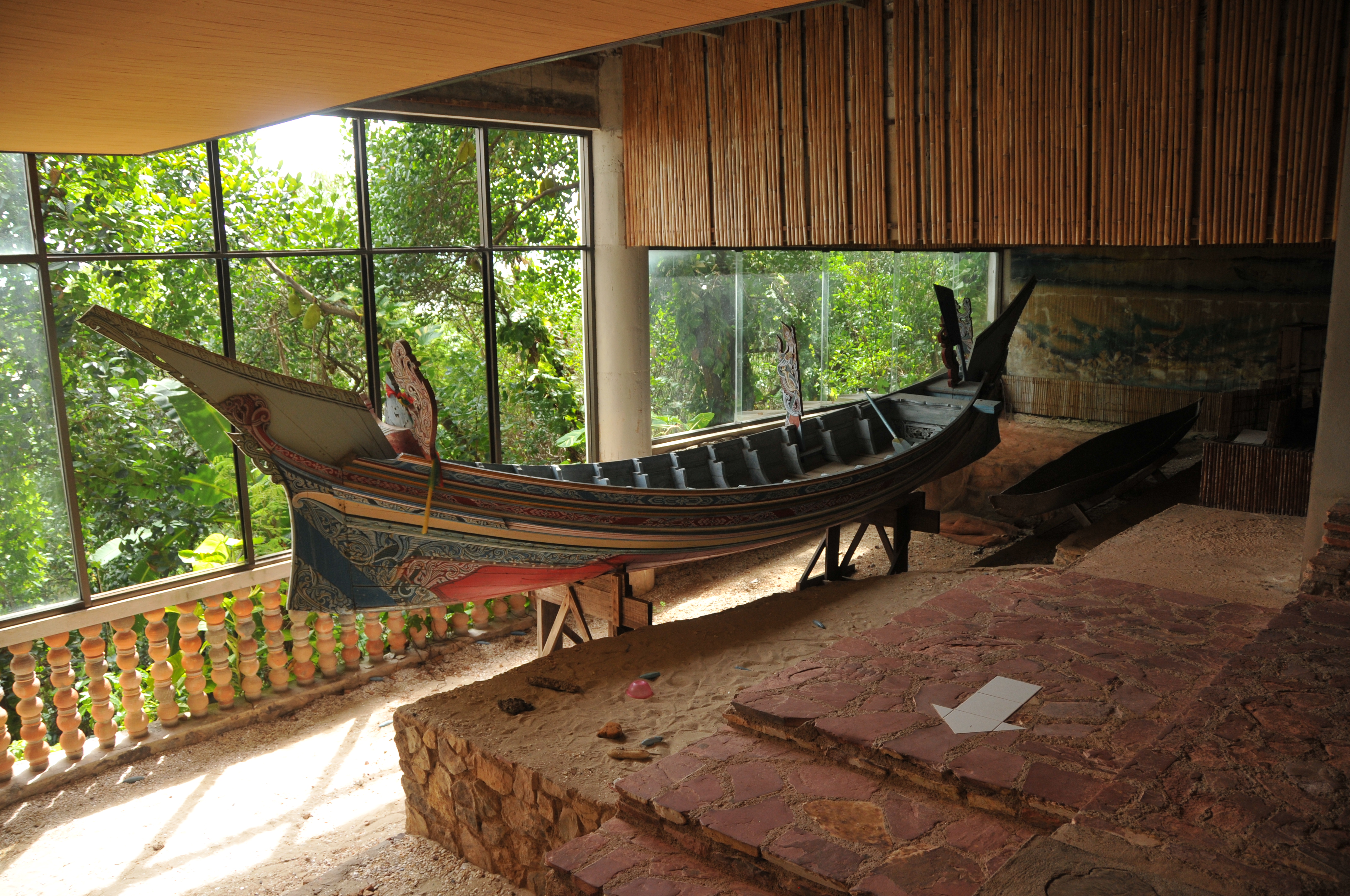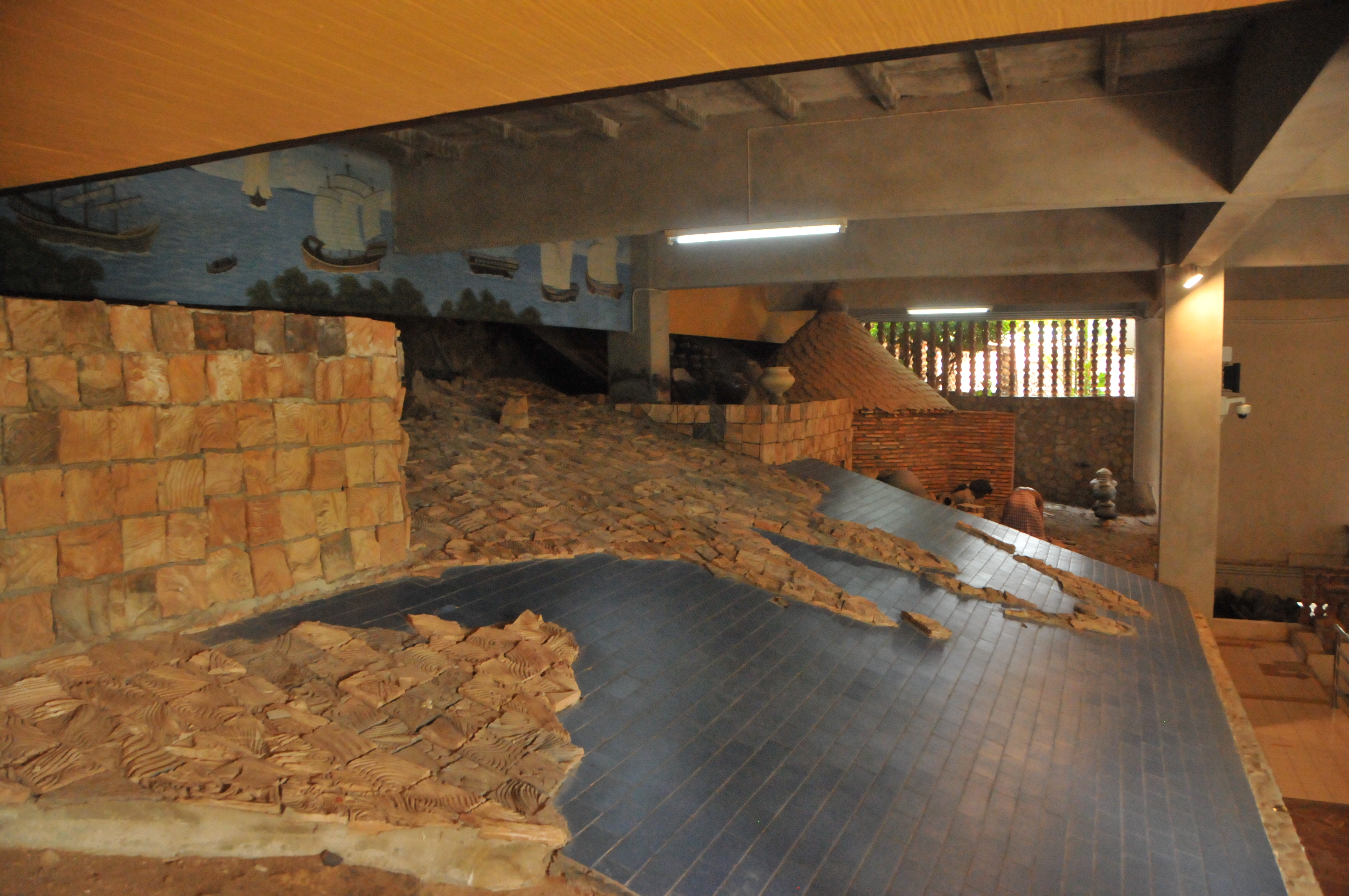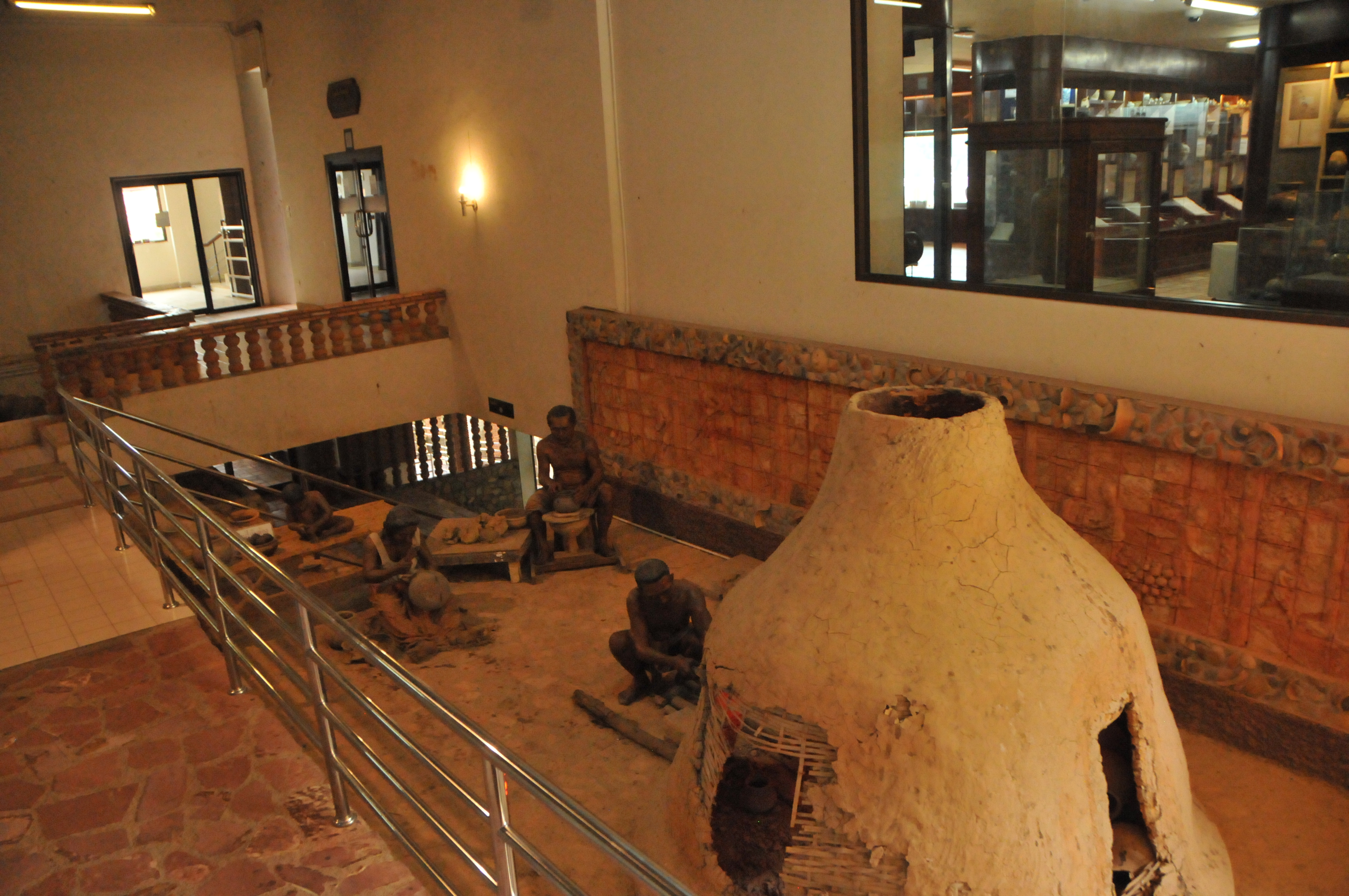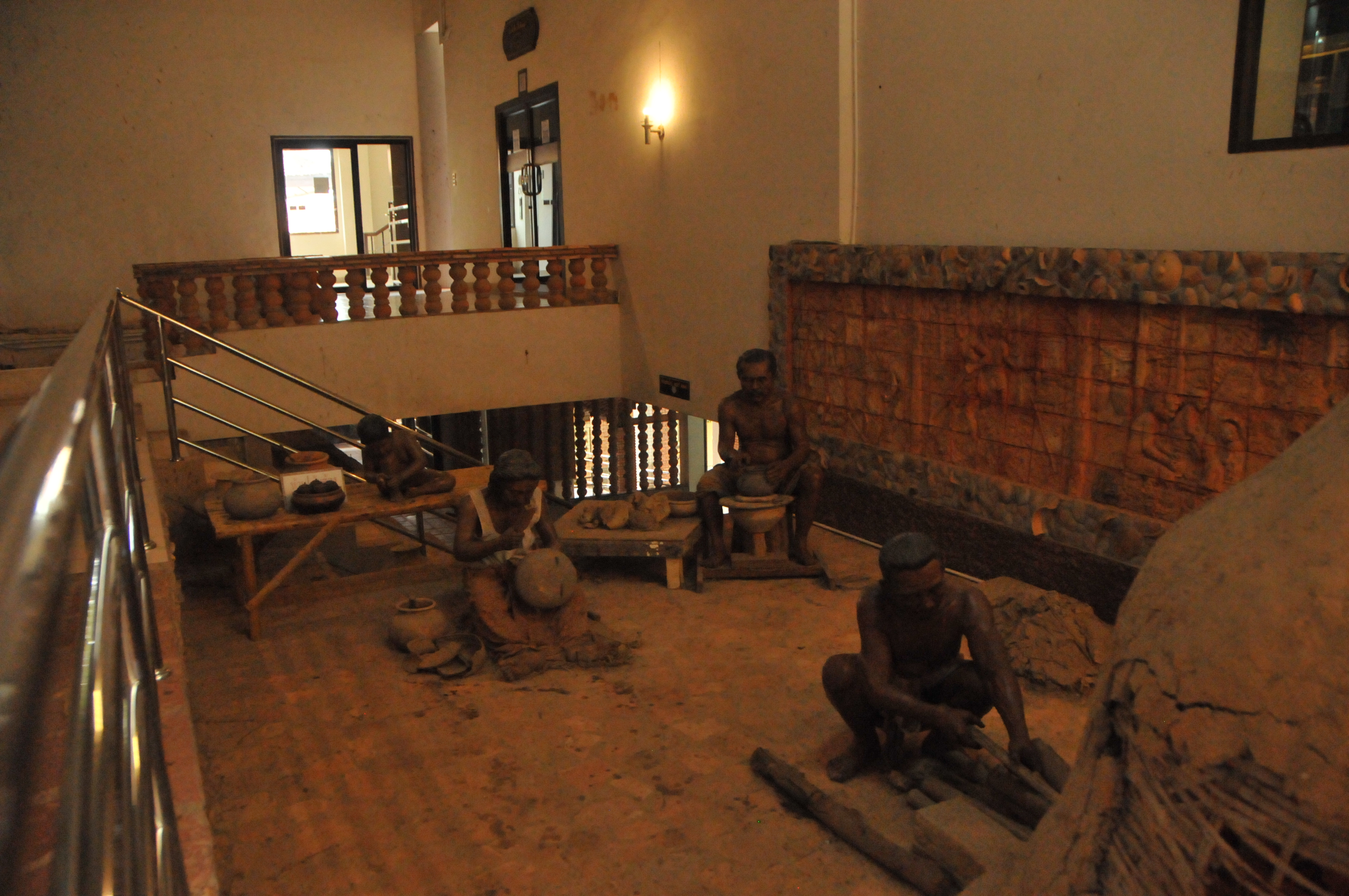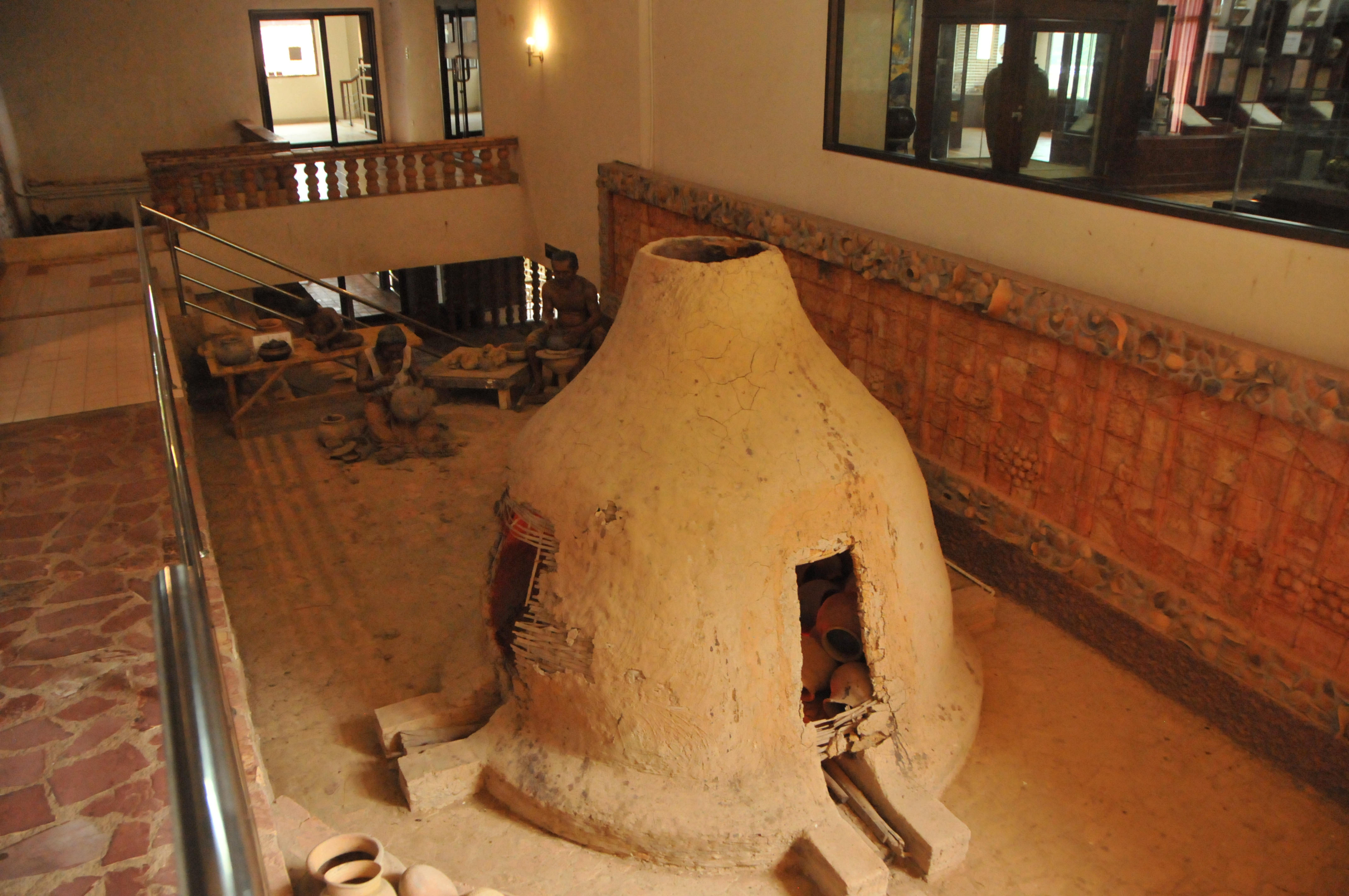 สภาพภูมิประเทศภายนอกห้องจัดแสดงจัดแสดงแบบจำลองการทำภาชนะดินเผา กระเบื้องดินผา และขั้นตอนการผลิตภาชนะดินเผาตั้งแต่กระบวนการการเตรียมดิน จนกระทั่งเมื่อได้เป็นผลิตภัณฑ์ออกมา โดยทำเป็นประติมากรรมนูนสูงดินเผา และยังได้จำลองรูปแบบเตาเผาที่พบจากการขุดค้นทางโบราณคดีซึ่งเป็นเตาเผาภาชนะที่บริเวณคลองปะโอ อำเภอสทิงพระ จังหวัดสงขลา และเตาเผาจำลองที่ยังคงมีการผลิตสินค้าประเภทกระเบื้องดินเผาอยู่ในปัจจุบัน