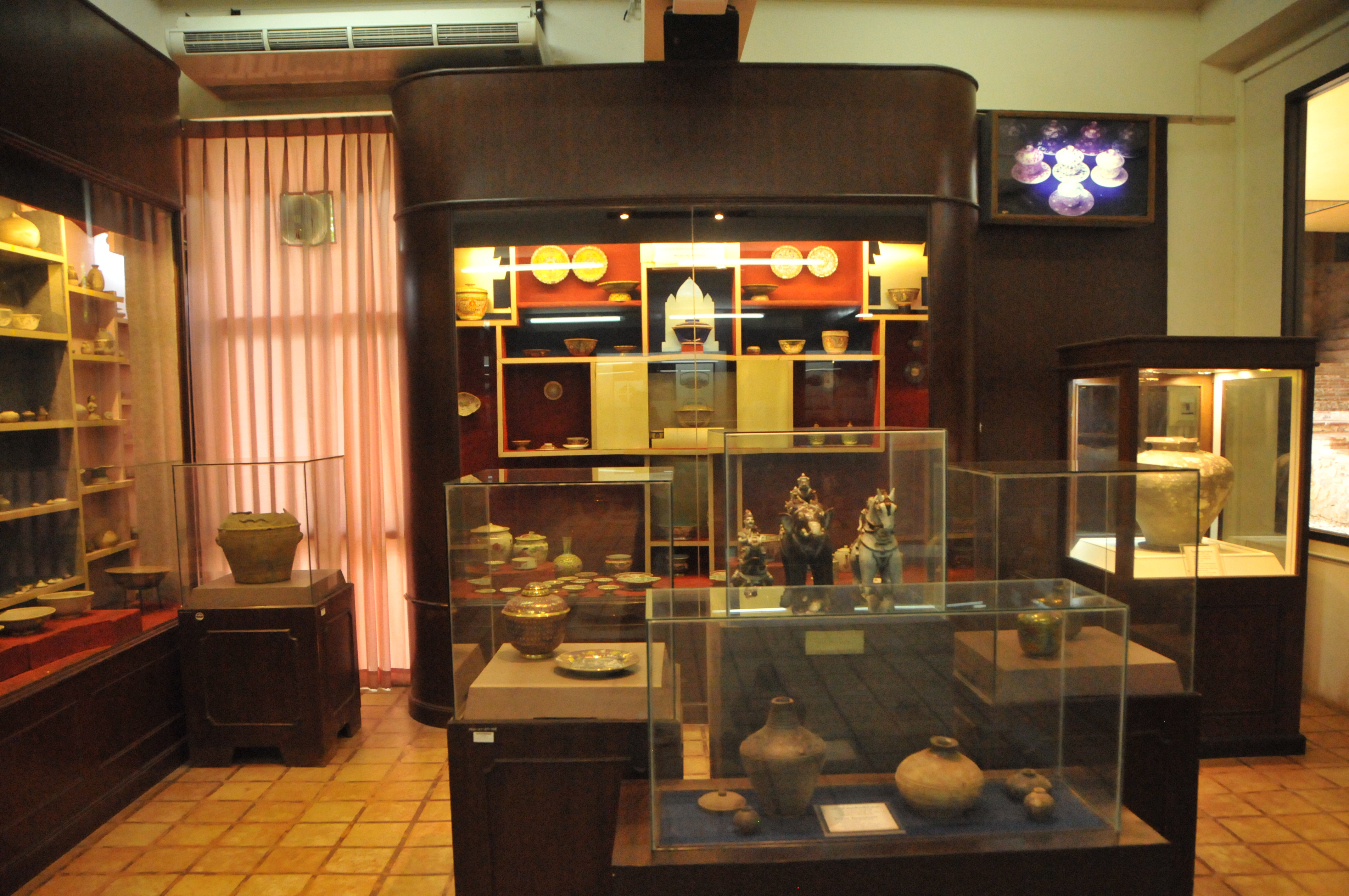 ภายในห้องจัดแสดงจัดแสดงเครื่องปั้นดินเผาที่พบในภาคใต้ตั้งแต่สมัยก่อนประวัติศาสตร์ถึงสมัยปัจจุบัน โดยมีทั้งภาชนะดินเผาพื้นเมืองของภาคใต้เอง เช่นภาชนะดินเผาที่พบจากแหล่งโบราณคดีสมัยก่อนประวัติศาสตร์ เครื่องปั้นดินเผาจากเตาคลองปะโอ เป็นต้นภาชนะดินเผาต่างถิ่น เช่น ภาชนะดินเผาที่ผลิตจากเตาแม่น้ำน้อยจังหวัดสิงห์บุรี ภาชนะดินเผาแบบกระเบื้องเคลือบผลิตจากแหล่งเตาเมืองสุโขทัย-ศรีสัชนาลัย ภาชนะดินเผาแบบเขมรที่ผลิตจากแหล่งเตาเผาที่จังหวัดบุรีรัมย์ เป็นต้น และอีก