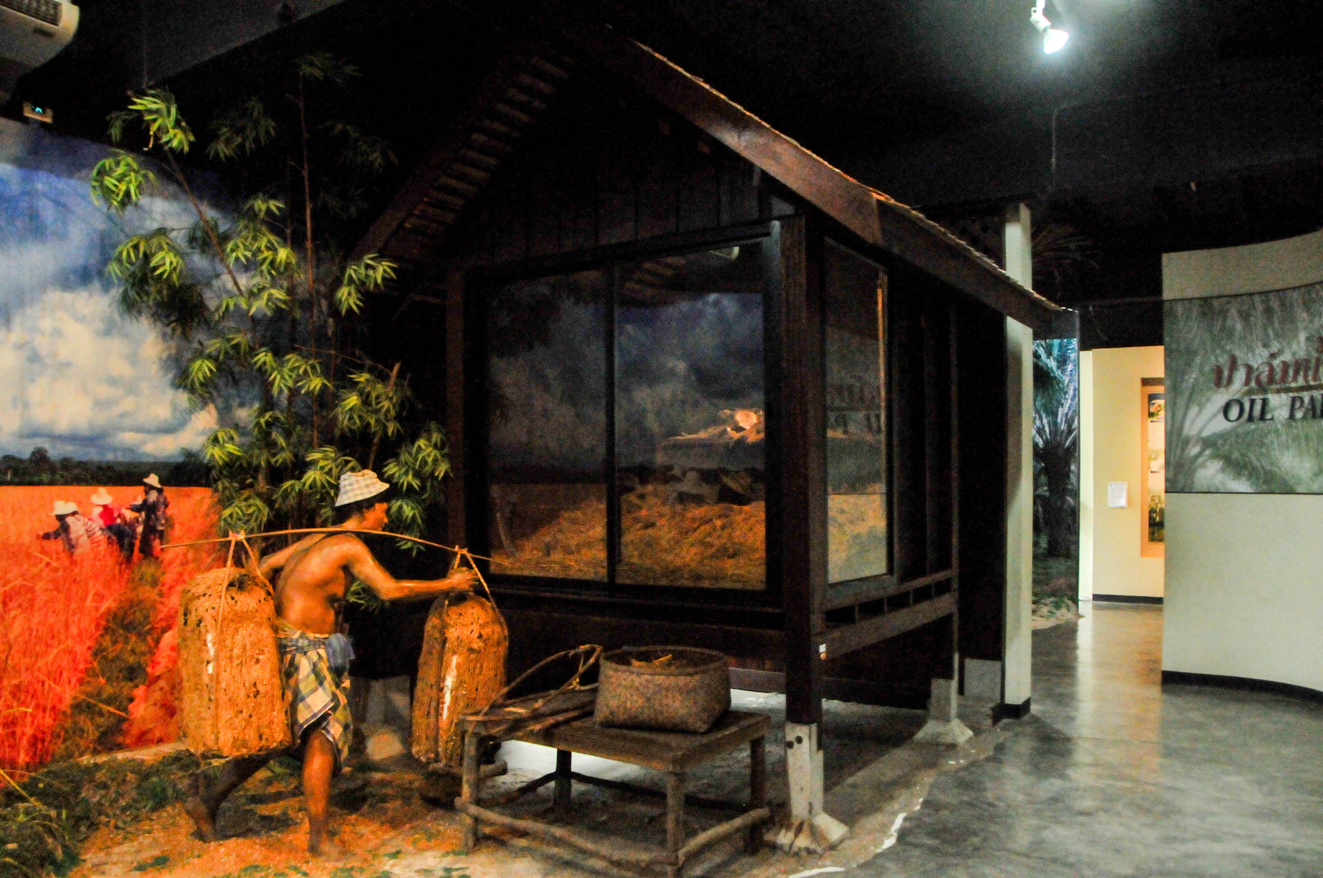 นอกจากจะเป็นการจัดแสดงวัตถุของจริงแล้ว ยังได้มีการจัดแสดงในส่วนของการจำลองบรรยากาศของสวนยางพารา การกรีดยาง แบบจำลองของเรือขุดแร่ประกอบกับอุปกรณ์อื่น ๆ ที่ใช้ในเหมืองแร่ทั้งเหมืองประเภทฉีดและประเภทขุด รวมทั้งยังมีการจำลองบรรยากาศภายในเหมืองแร่จัดแสดงประกอบอยู่ด้วยรวมทั้งตัวอย่างของหิน-แร่ที่เป็นทรัพยากรที่ปรากฏในภาคใต้ไว้ด้วย นอกจากนี้ยังได้จัดแสดงเครื่องส่งสัญญาณซึ่งในในหมู่บ้านในชนบทไม่ว่าจะเป็นเหลาะ หรือดึงซึ่งใช้ผูกกับสัตว์เลี้ยง เป็นต้น