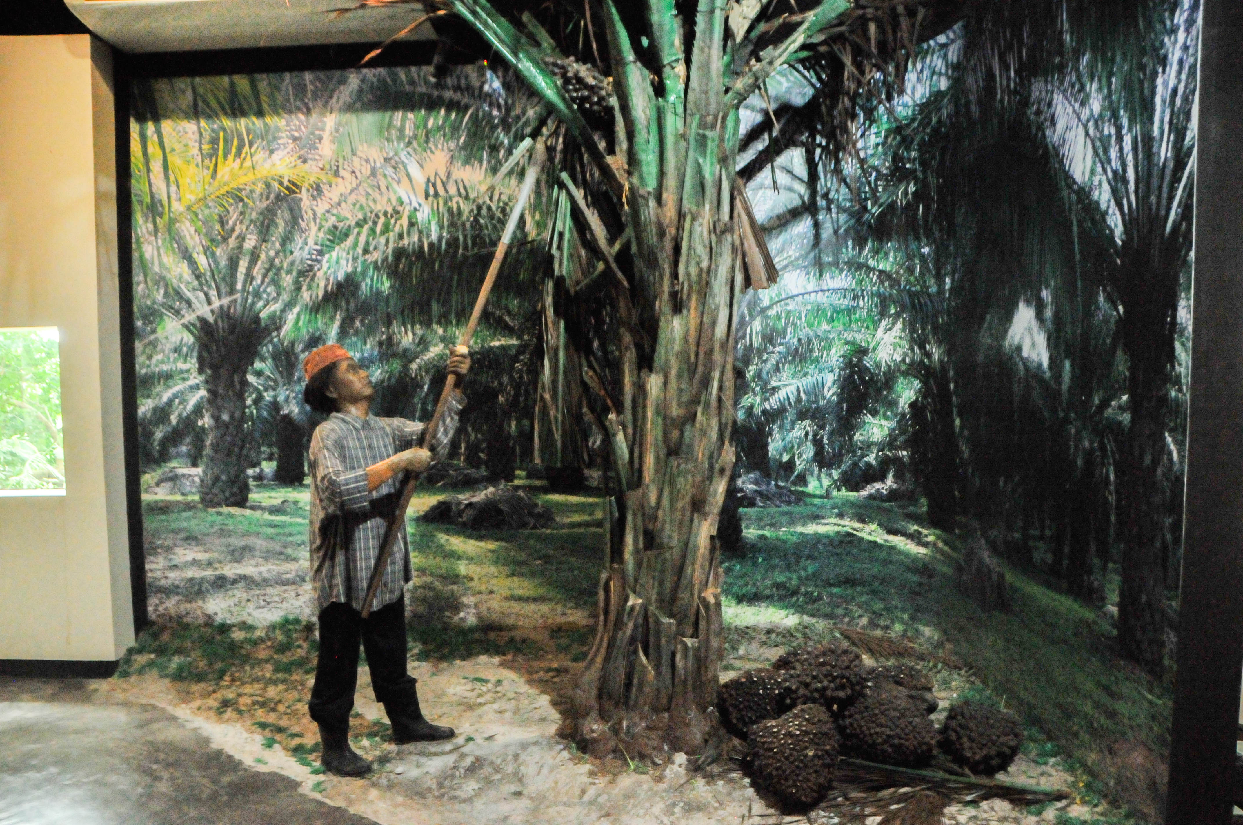 การทำสวนปาล์มน้ำมัน ปาล์มน้ำมันเป็นพืชเศรษฐกิจอีกชนิดหนึ่ง นายเจียร วานิช เป็นผู้ริเริ่มให้มีการปลูกปาล์มน้ำมันในประเทศไทยขึ้นครั้งแรก เมื่อปี ๒๕๐๙ โดยการนำพันธุ์ปาล์มจากประเทศมาเลเซียมาปลูกเพื่อการพาณิชย์ ที่อำเภออ่าวลึก จ.กระบี่ และส่งเสริมให้เกษตรกรปลูกปาล์มน้ำมัน และได้ตั้งบริษัท ไทยอุตสาหกรรมน้ำมันปาล์มและปาล์มน้ำมัน จำกัด ขึ้นเพื่อรองรับปาล์มน้ำมันที่มีการปลูกเป็นพืชเศรษฐกิจดังกล่าวปาล์มน้ำมันเป็นพืชที่เหมาะสมกับสภาพอากาศร้อนชื้น อยู่ใกล้เส้นศูนย์สูตร จึงเจริญเติบโตได้ดีในภาคใต้ของประเทศ พื้นที่ที่ปลูกมากที่สุด คือจังหวัดกระบี่ สุราษฎร์ธานี ชุมพร สตูลและตรัง ทั้งนี้เนื่องจากผลตอบแทนการปลูกปาล์มน้ำมันดีกว่าการปลูกพืชชนิดอื่นจึงเป็นแรงจูงใจให้เกษตรกรขยายพื้นที่ปลูกมากขึ้น ในการจัดแสดงภายในห้องอาชีพหลักภาคใต้นั้น